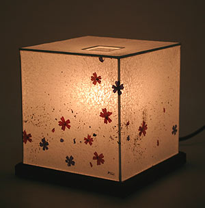 ■素 材:桜形和紙入り紙 サイズ:角約15×H15cm ■ミニ球 25w 1灯付き ■写真をクリックすると大きな画像が見れます ■手作りの為、色柄などは多少異なります。